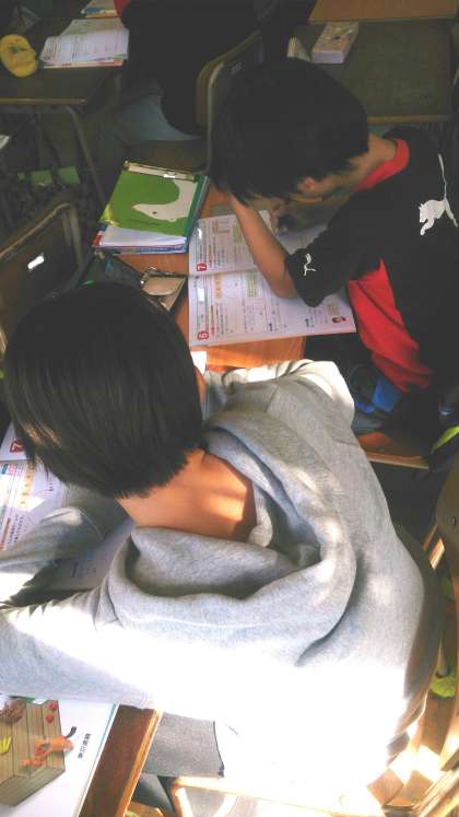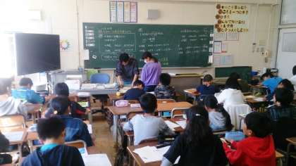 5年生の算数では、「人口密度」を求める学習に取り組んでいます。課題解決後、ドリルを使って、練習問題に取り組んでいます。