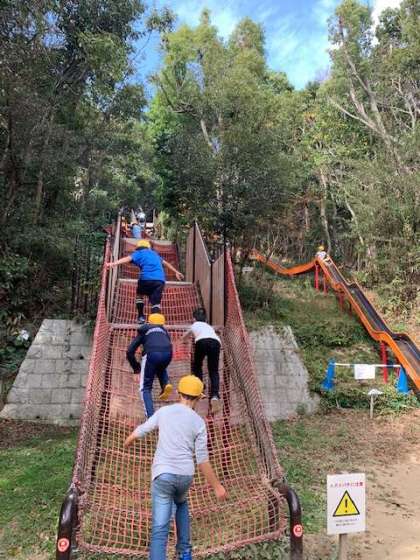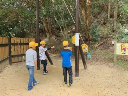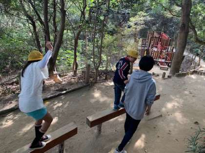 アスレチックに、チャレンジしています。みんなとても楽しそうです。