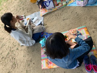 昼食です。陽が当たれば暖かく、日陰でも上着を着れば寒くない過ごしやすい天気です。
