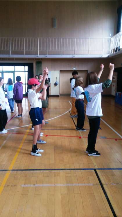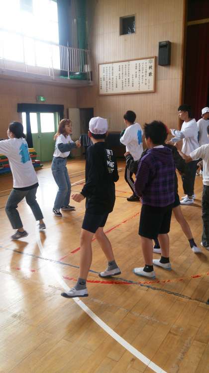 続いて、グループごとに練習しました。子どもたちは、とても集中して楽しみながらダンスの振付を覚えていました。