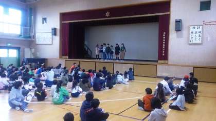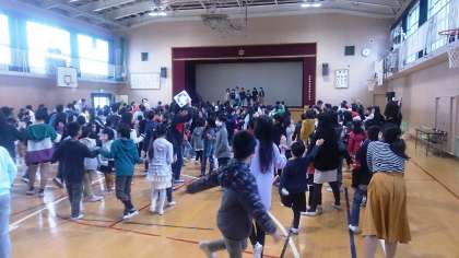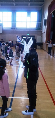 朝、児童集会がありました。集会委員会が企画・進行するゲームをみんなで楽しみました。たてわり班で集合する際、6年生の班長が、先頭に立って子どもたちをしっかりとまとめています。
