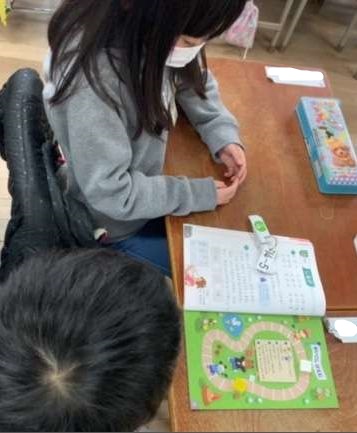 「ひきざん」のまとめとしてさんすうすごろくをペアでしていました。計算カードを使って、その答えの分だけマスを進めていました。