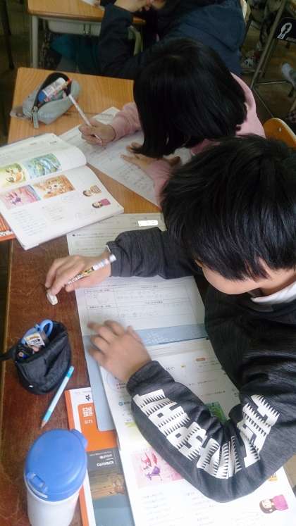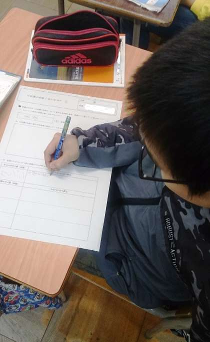 5年生の国語で、「不思議な世界にでかけよう」の学習で、作文を書きます。子どもたちは、想像力を発揮して、登場人物やストーリーなどを考えています。