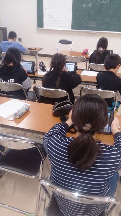 今日の放課後、子どもたちは、「のびのびタイム」で、これまで習った学習の復習に取り組んでいます。子どもたちは、タブレットの操作にも慣れて、集中して、どんどん問題を解いています。