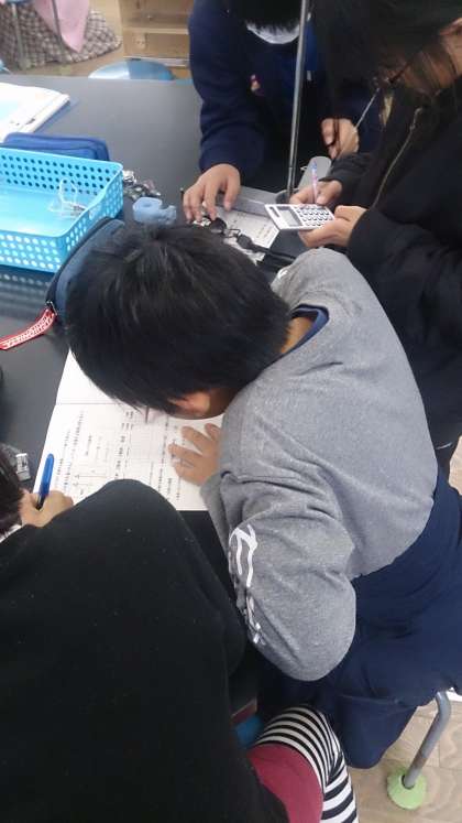 5年生の理科では、振り子の実験をしています。しっかりと記録をとり結果を考察しています。