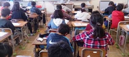 1・2学期の学習をふりかえりプリントで、復習しています。答え合わせをして、自分の課題を見つけ、再度やり直して課題を解決します。