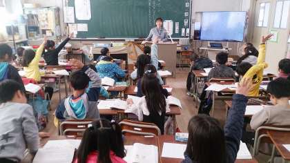 2年生の国語で、「名人紹介カード」で、身近にいる人から名人を探して、紹介する文章を書く学習です。子どもたちは、たくさんの名人を探していました。
