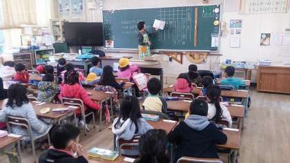 毎週金曜日の朝、図書館ボランティア「あおむし」の方々が、全学年に、朝の読み聞かせをしていただいています。写真は、今朝の1年生への読み聞かせの様子と、はぐくみネット主催の「ぴーすコンサート」での様子です。子どもたちのために活動していただき、ありがとうございます。