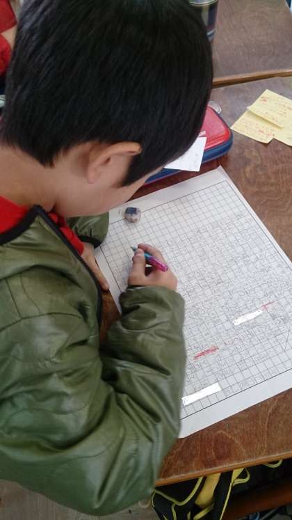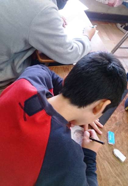 6年生が、卒業アルバムの文集づくりに取り組んでいます。文集に載せるイラスト等も描いています。