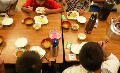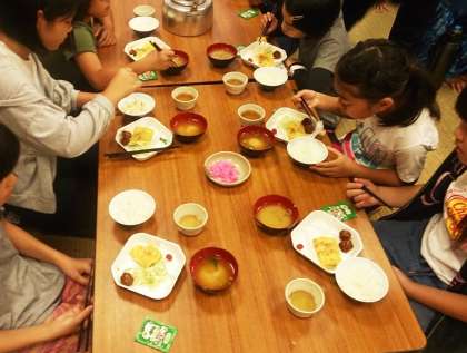 2日目、登山に備えて朝食をしっかり食べています。おかわりする子どもたちもたくさんいました。食欲旺盛で元気です。