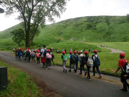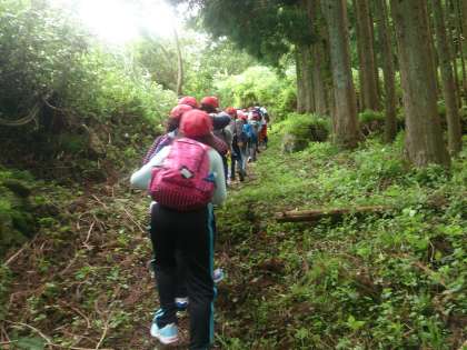 朝食の後、登山に出発しました。子どもたちは、高丸山に向かって頑張って歩きました。