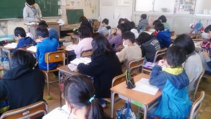 5年生の国語で、伝記「手塚治虫」の学習に取り組んでいます。伝記を読んで自分の生き方を考えようという学習です。全文を通読して、読み取っていきます。