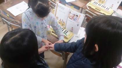 2年生の音楽で、「わらべうたをきいたりうたったりしましょう」の学習で、「ずいずいずっころばし」を友だちと楽しみました。
