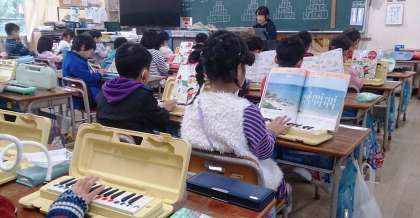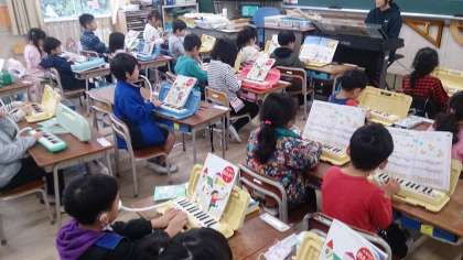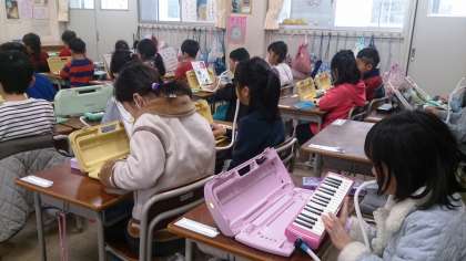 1年生の音楽で、鍵盤ハーモニカの演奏に取り組んでいました。1音1音リズムにのせて、丁寧に演奏しています。