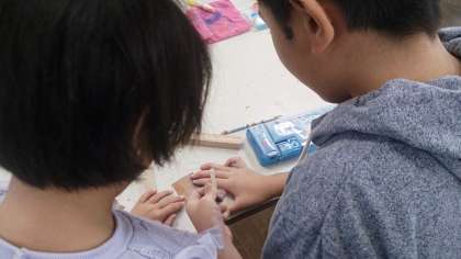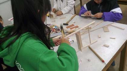 4年生の図工では、「ギコギコトントン」という教材で、木工の作品づくりに取り組んでいます。のこぎりやかなづちで、作品を作っています。