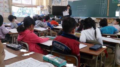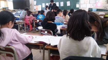 終業式の各学級では、「冬休みのくらし」や宿題の配布、生活についての諸注意等が行われています。