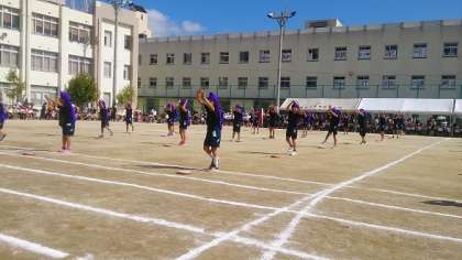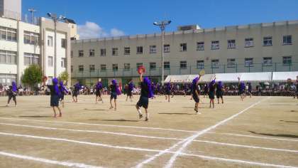 3年生「エイサー〜島人ぬ宝」沖縄のリズムに乗って、全員で息を合わせて踊りました。