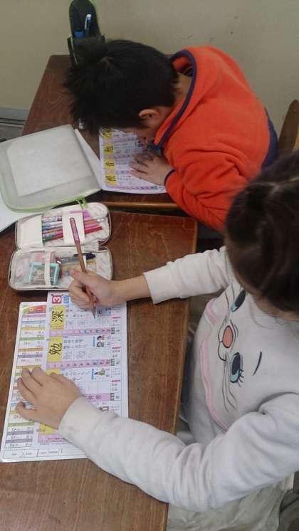 3年生の国語では、新出漢字の学習に取り組んでいます。一画一画書き順を空書きしたり、熟語と合わせてドリルで練習したりします。