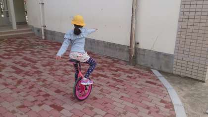 鬼ごっこに鬼を決めるジャンケンをしている子どもたちやこつこつと一輪車の練習を続けている子どももいます。子どもたちは本当に楽しそうです。