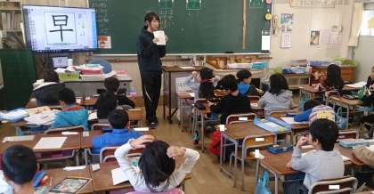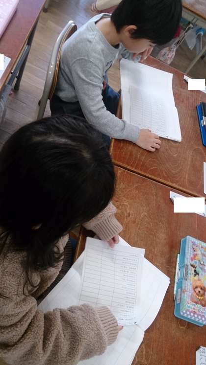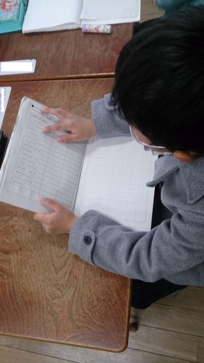 1年生の国語で、新出漢字「早」「子」の学習の後、桃太郎などの昔話を読んでカードに書き込む用紙が配布されました。これからどんどん読書してほしいと思います。