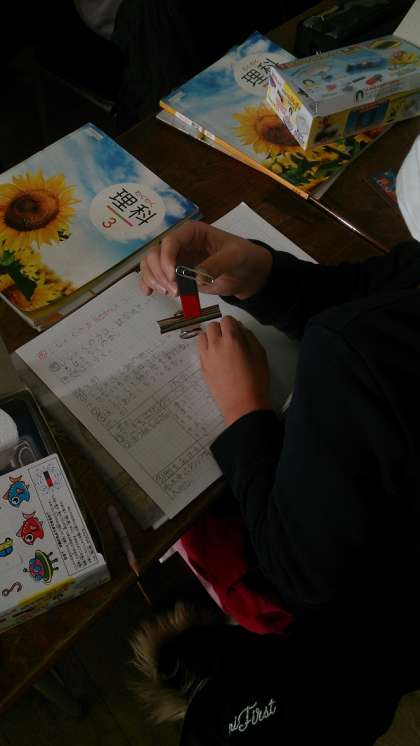 3年生の理科では、「じしゃくの力を調べよう」という課題で、磁石の力は、離れていても働くかどうか予想をたてて、実験しています。