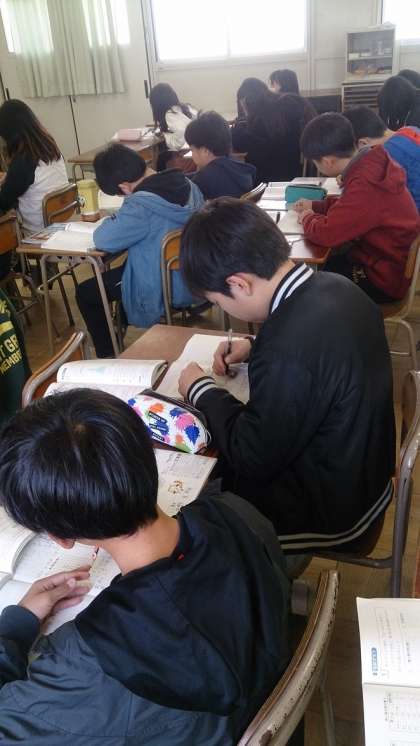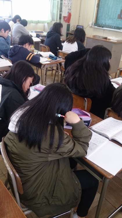 資料の調べ方の学習で、この時間では、「柱状グラフ」(ヒストグラム)について学習しています。子どもたちは、集中して課題に取り組んでいます。