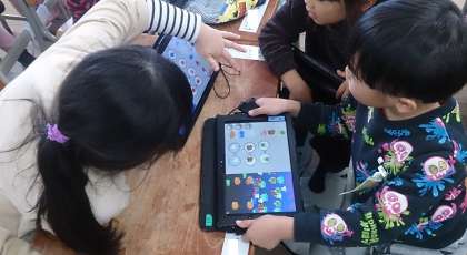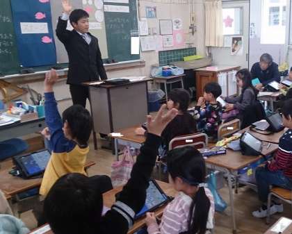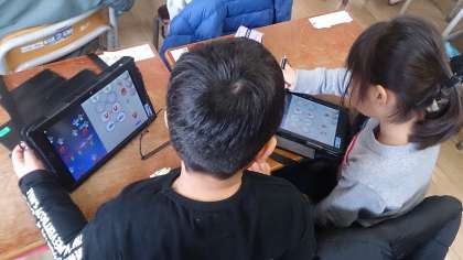 プログラミングでできた動く画面を友だち同士見せ合いました。最後は、全体に発表しました。