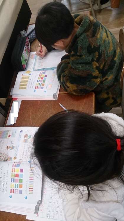 1年生の算数で、「99よりおおきいかずをかぞえよう」という学習に取り組んでいます。ペンギンの数を数え、99の次は100と書き表す学習です。子どもたちは、10が10こ集まると100になることを理解していきます。