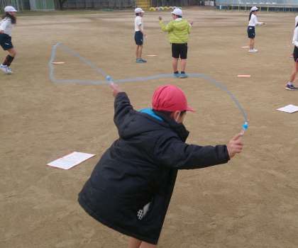 3年生の体育で、体つくりの運動として、縄跳び運動に取り組んでいます。縄跳びカードも活用して、自分でめあてをもって運動できるように支援しています。