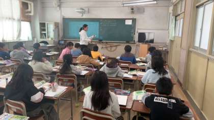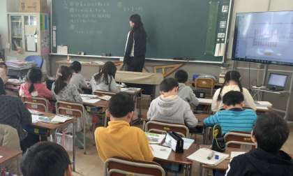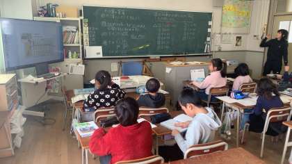 「かけ算のひっ算2」の学習で、今日は1けた×何十の計算を学びました。3分割に分かれて少人数で展開していました。