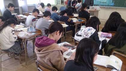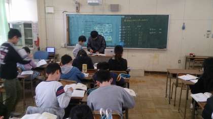 6年生の算数で、資料を活用して表にまとめる学習に取り組んでいます。子どもたちは、電卓を使って平均を求めています。