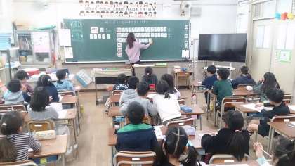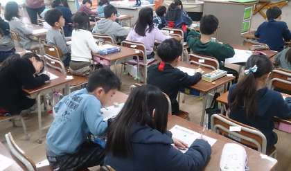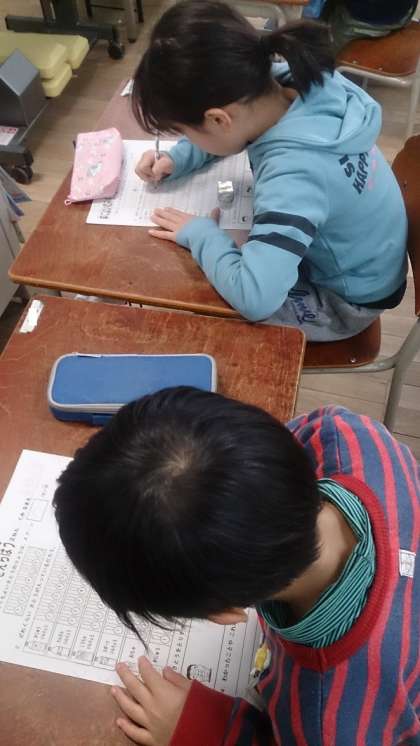 2年生は、栄養指導で、「からだによいのみものをえらぼう」という課題に取り組んでいます。栄養教諭の先生から、砂糖が多く含まれる飲み物について学んでいます。