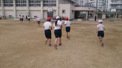 5年生の体育で、持久走の運動に取り組んでいます。持久走は、体力を高める運動で、動きを持続する能力を高めるための運動です。