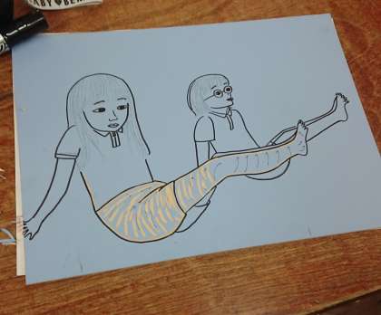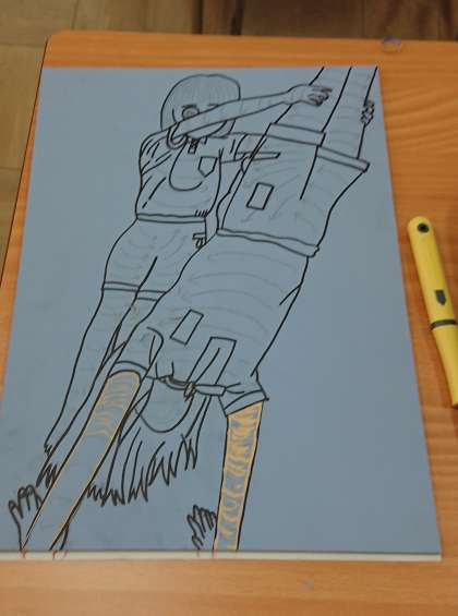 版画作品に取り組んでいます。テーマは「運動会の組体操」です。