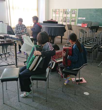 パートごとに分かれて合奏の練習をしています。挑戦している曲は「キリマンジャロ」です。