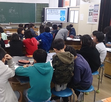 5年生の理科では、水の量を変えずに溶け残ったものを溶かすことができるかという課題に対して、予想を話し合っています。ノートにも考えをしっかりと書いています。