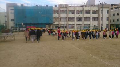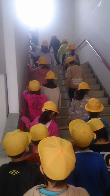 1限目に、避難訓練を行いました。地震の避難訓練で、運動場に避難した後、津波発生時の2次避難として、校舎の3階に避難しました。子どもたちは、静かに避難することができました。