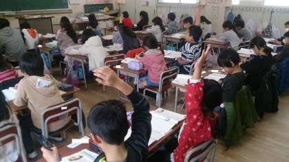 1年生の国語で、説明文「歯がぬけたらどうするの」の学習に取り組んでいます。この時間の学習では、世界各国の乳歯がぬけた後の処理方法の共通点を話し合っています。子どもたちは、積極的に発表しています。