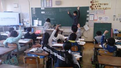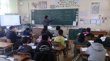 5年生の算数で、割合を円グラフや棒グラフに表す学習に取り組んでいます。割合の大きい順に、それぞれ百分率にしたがって区切っていく等、グラフの書き方を学んでいます。