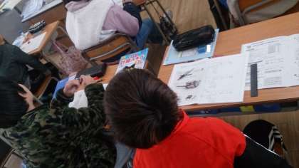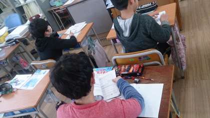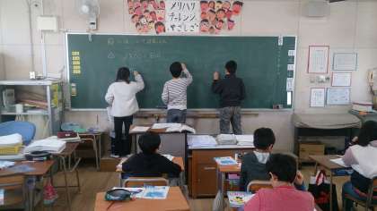 4年生の算数で、倍の計算の仕方について学んでいます。写真は、しっかりと答え合わせをしている様子です。