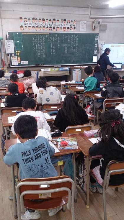 2年生の国語で、説明文「あなのやくわり」の学習に取り組んでいます。この時間は、文章構成について学んでいます。