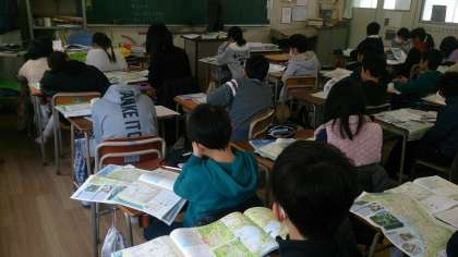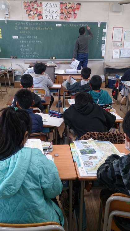4年生の社会で、「地域の発展につくした人々」の学習に取り組んでいます。昔の大阪と今の大阪を地図で比べて違いを発見しています。