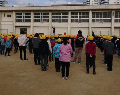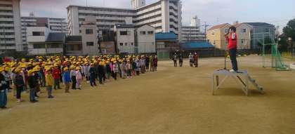 和キックベースチームの表彰のあと、校長先生から「いつもみんなは、地域の人々に支えられ、応援されている。」とお話がありました。