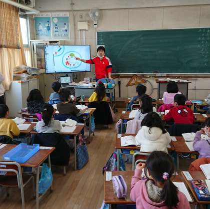 「火」「水」「木」でじゃんけんをしたとき、どれがどれに勝つのか、理由といっしょにみんなで話し合いました。動作化もしながら学んでいます。
