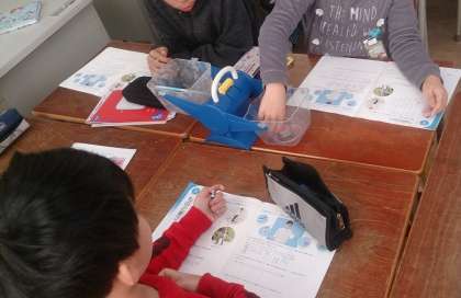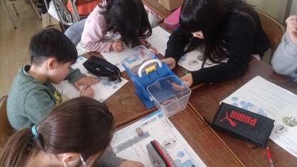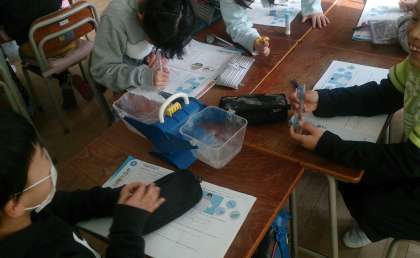 3年生の理科では、「ものと重さ」の学習に取り組んでいます。物の形と体積と重さについて体感をもとにしながらグループで実験しています。