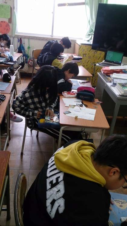 5年生の図画工作で、木版画に取り組んでいます。楽器を演奏したり、スポーツをしたりしている人物の様子を丁寧に彫っています。