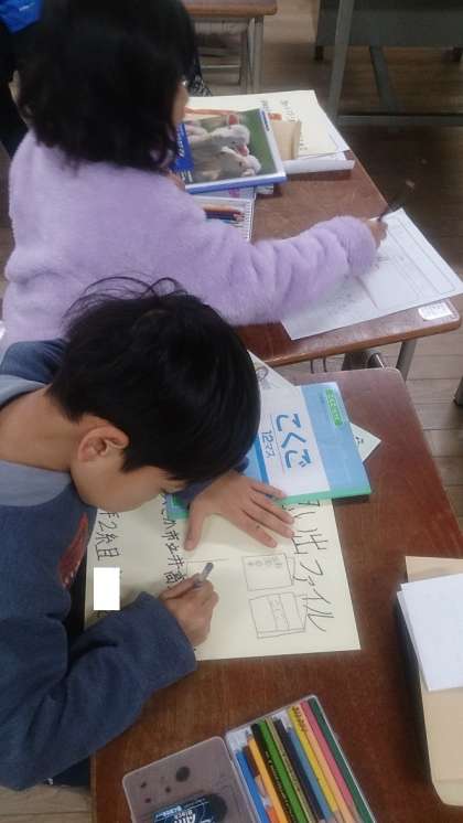 2年生の学級活動で、思い出ファイルづくりに取り組んでいます。1年生の時の思い出や2年生になってからのことなど書いて、ファイルにしています。