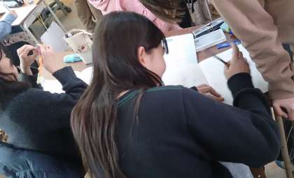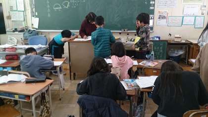 5年生の算数で、単元の学習のまとめに取り組んでいます。学年を3分割して学んでいます。