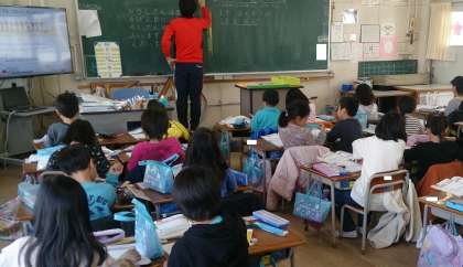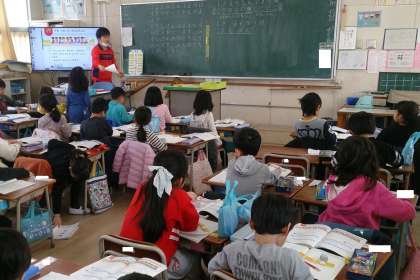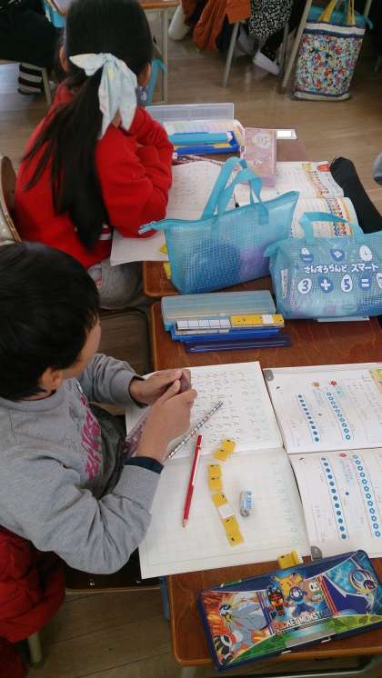 1年生の算数で、単元「ずをつかってかんがえよう」の学習に取り組んでいます。数量を図であらわす学習です。