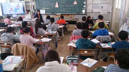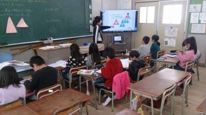 3年生の算数で、学年を3分割して学習しています。二等辺三角形の角の大きさを考える学習です。